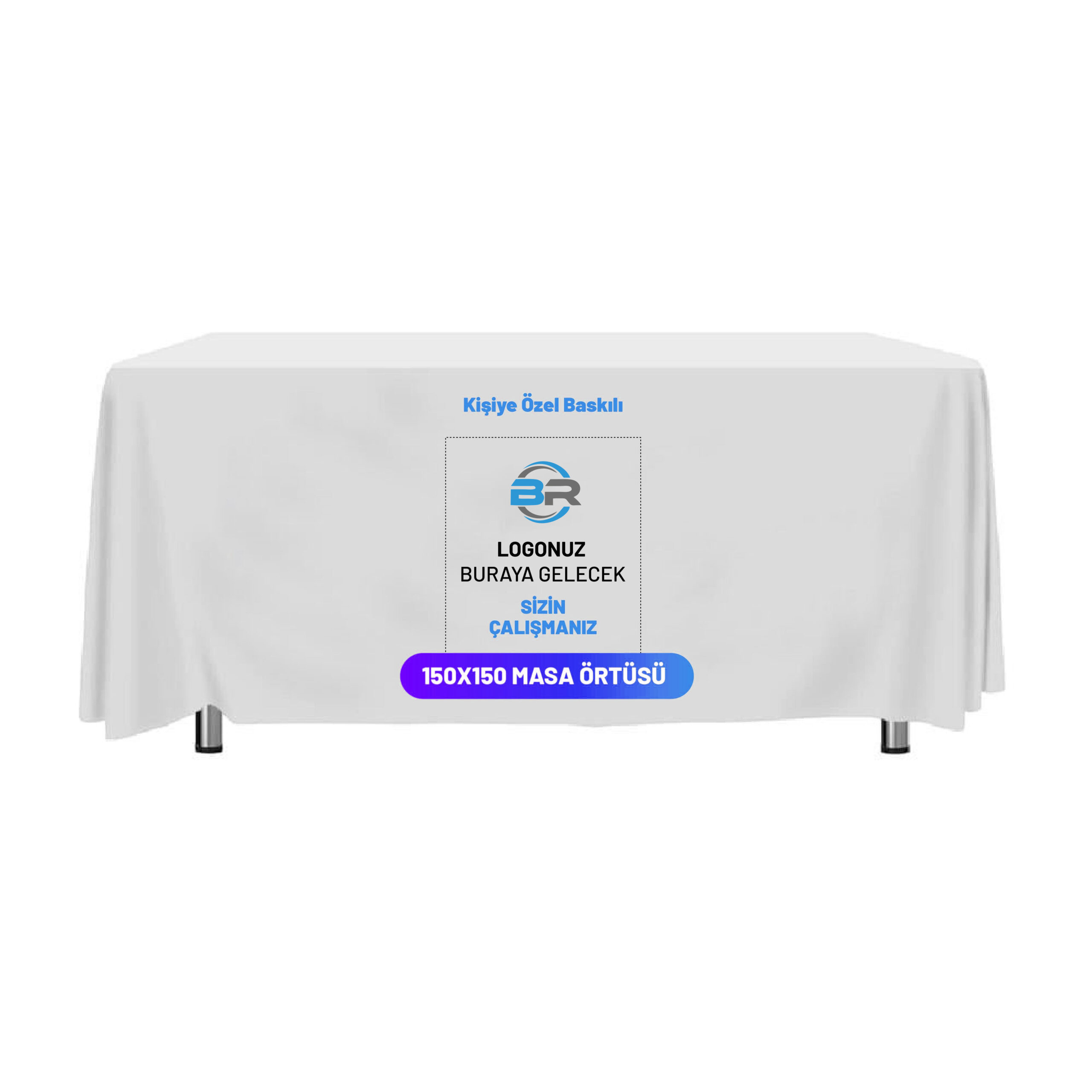 150×150 cm baskılı masa örtüsü, özellikle kare masalar için tasarlanmış, fuarlar, etkinlikler, toplantılar ve promosyon amaçlı kullanımlar için ideal bir üründür. Bu masa örtüleri, markanızın veya mesajınızın etkili bir şekilde sergilenmesini sağlayarak, dikkat çekici ve profesyonel bir sunum yapmanıza olanak tanır.